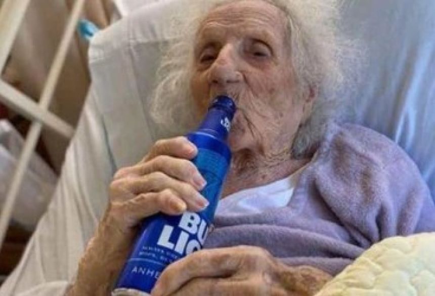 Idosa de 103 anos comemora cura da Covid-19 bebendo cerveja
