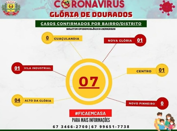Regiaonline Coronavirus: Em Glória de Dourados, Novo Boletim mostra a distribuição dos casos confirmados de Covid-19 por Bairro/Distrito.