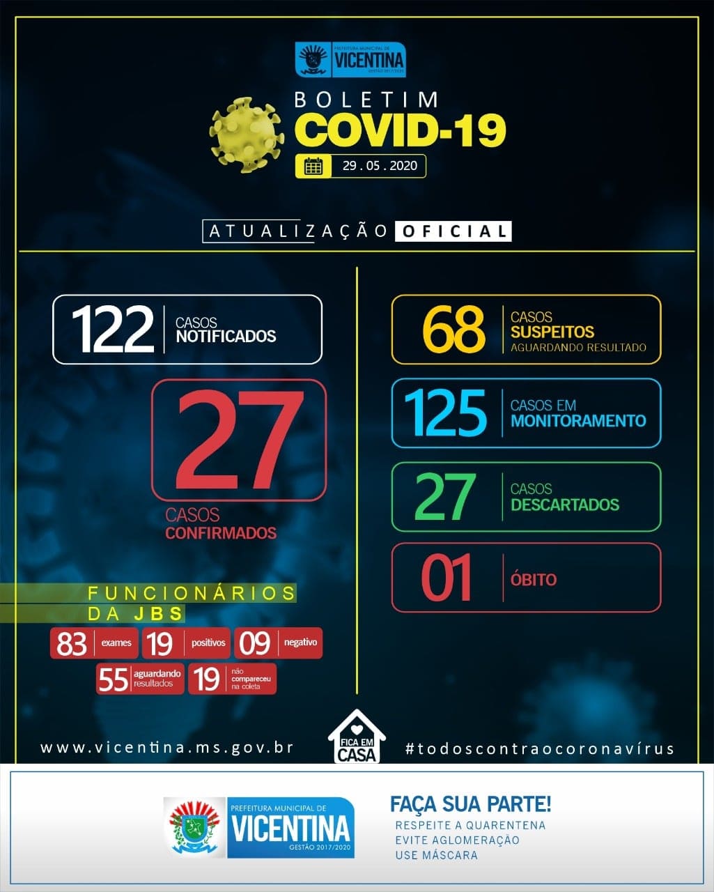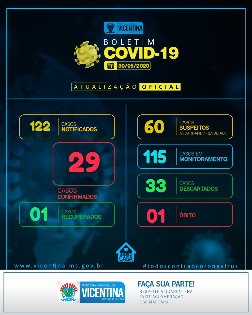 Regiaonline Pandemia e Contágio: Em Vicentina-MS, chega a 29 os casos de Covid-19.