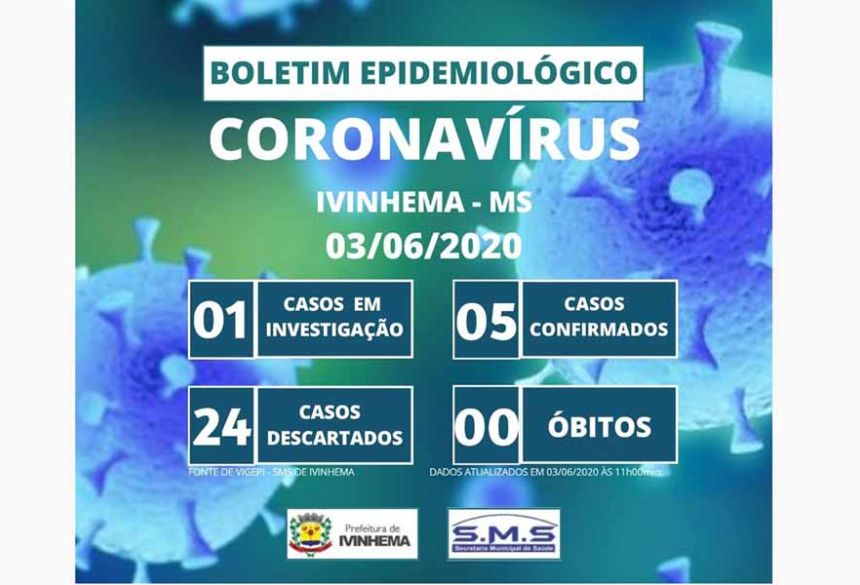 Regiaonline Boletim Epidemiológico: Em Glória de Dourados, 05 casos foram descartados para Covid-19.