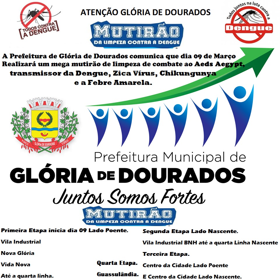 Regiaonline Mutirão da Limpeza: Em Glória de Dourados, combate ao Aedes Aegypti contará com Intenso Trabalho de Limpeza a partir do dia 09 de março.