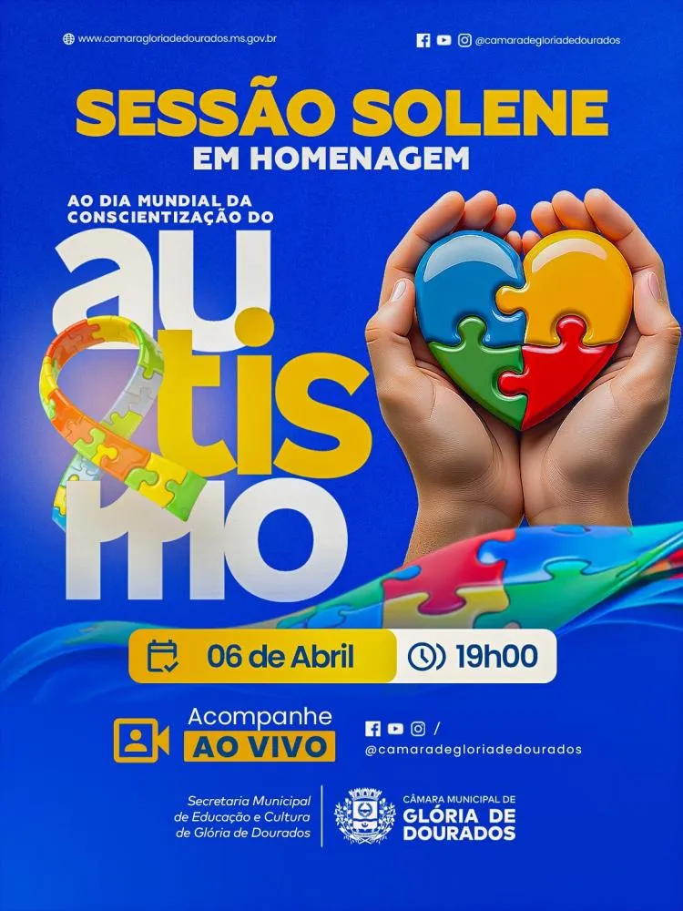 Câmara de Glória de Dourados realiza sessão solene em homenagem ao Dia Mundial de Conscientização do Autismo