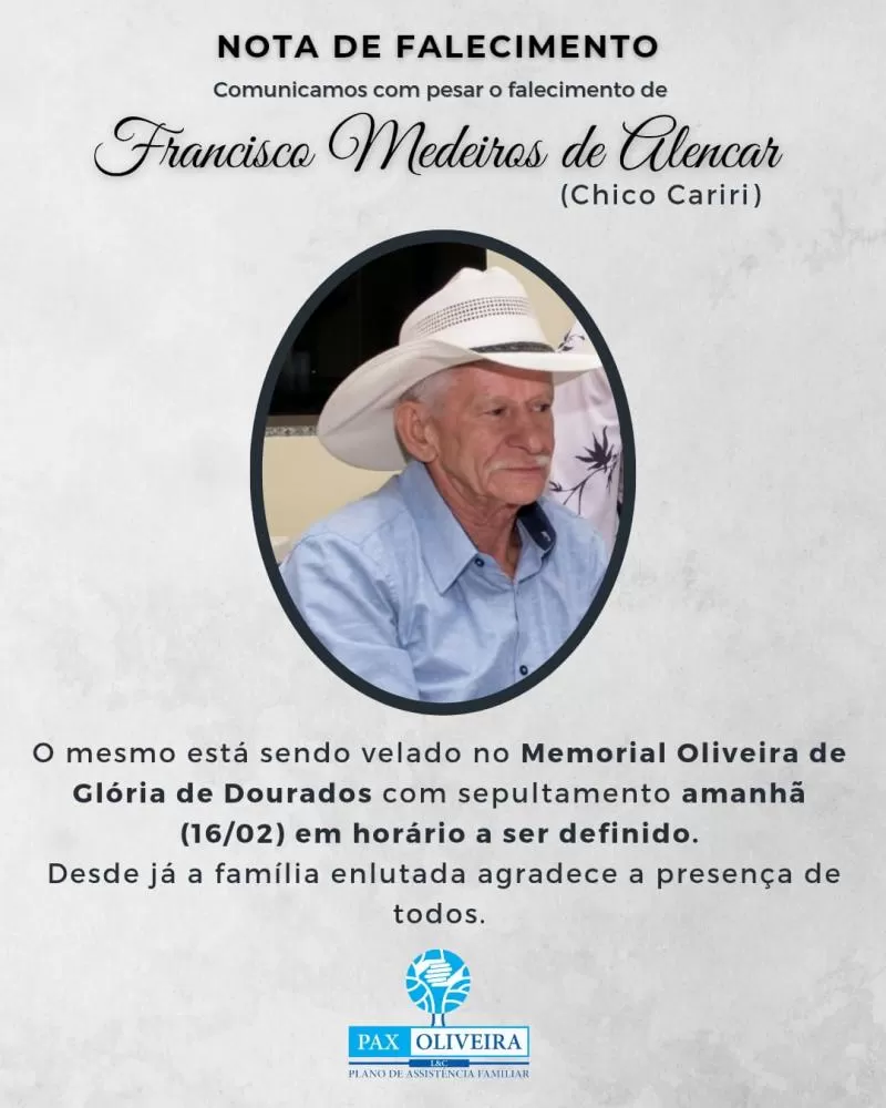 REGIÃOONLINE lamenta o falecimento de Francisco Medeiros de Alencar
