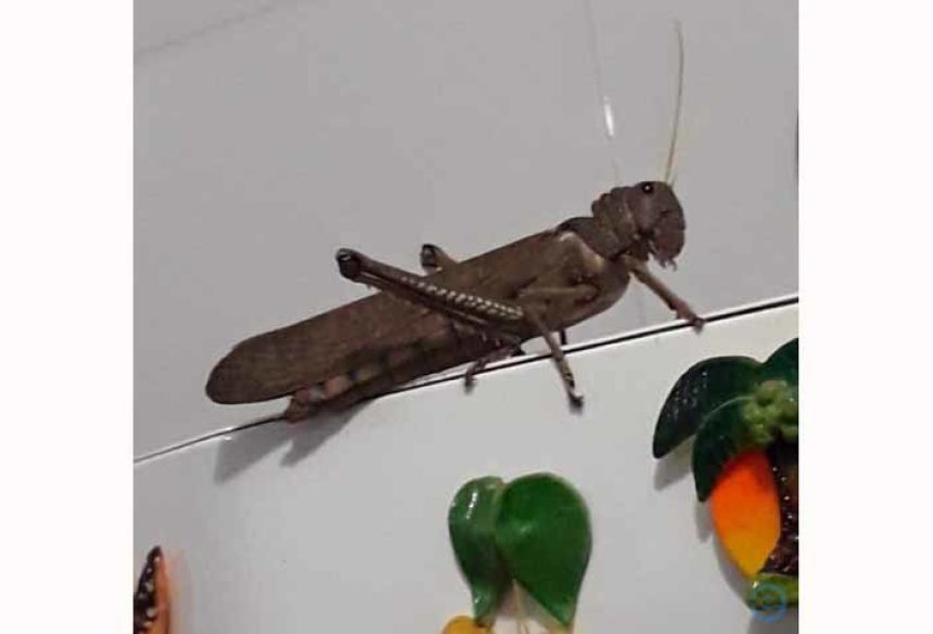 Moradora de Coxim encontra gafanhoto “gigante” na porta da geladeira