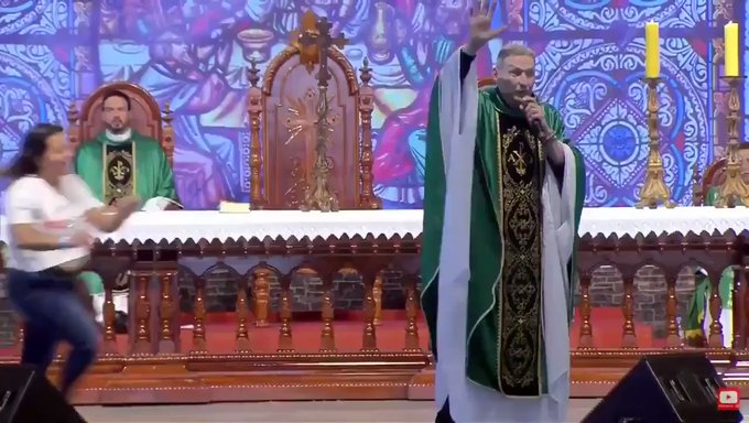 Padre Marcelo Rossi cai do altar após ser empurrado em missa