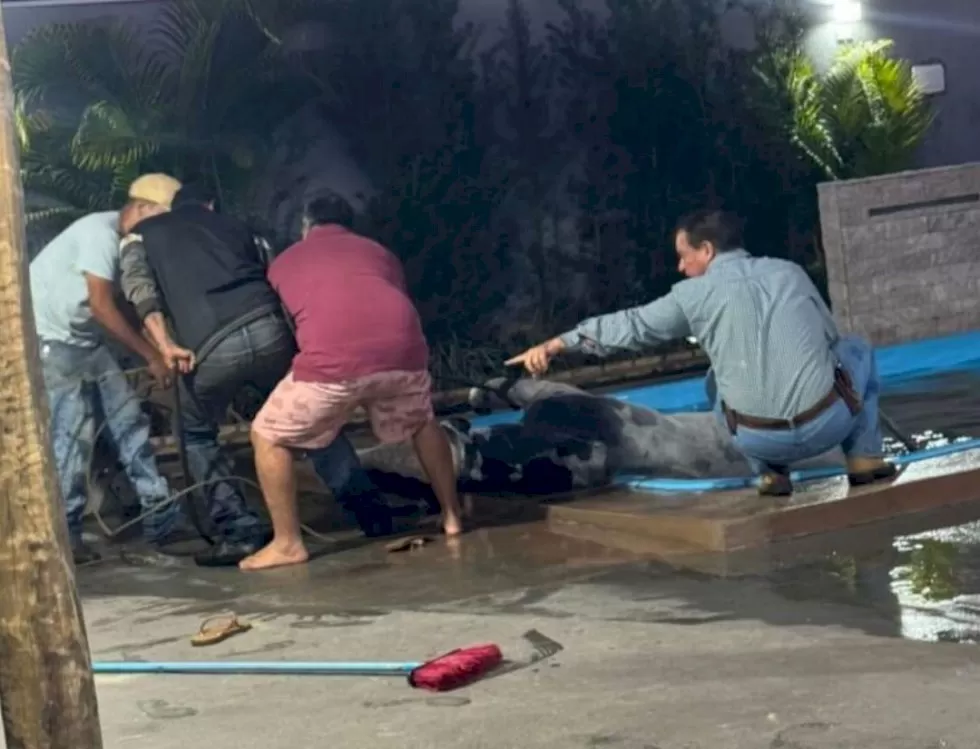 Deu um “baile”: Touro de quase 1 tonelada cai em piscina de casa em MS