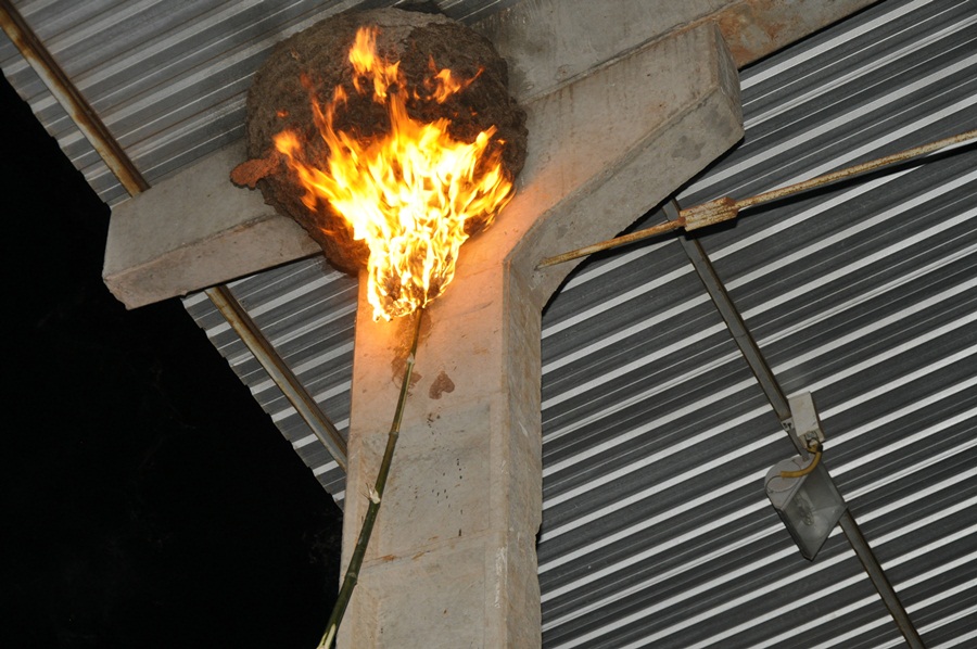 Regiaonline Extermínio: Em Glória de Dourados, Bombeiros e Defesa Civil de Glória de Dourados realizaram trabalho de eliminação de Arapuás na Escola Dois de Maio.