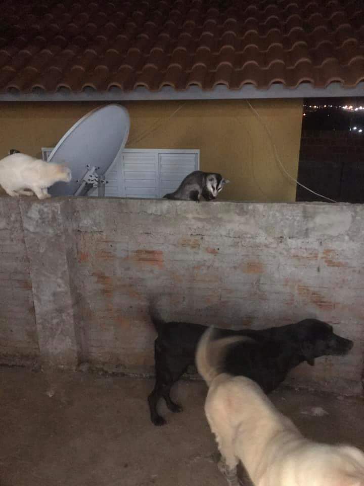 Regiaonline Fauna Silvestre: Em Glória de Dourados, Gambá é flagrado entre cães e gatos de forma harmoniosa.