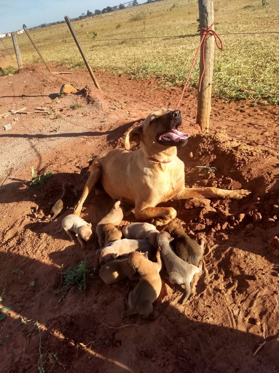 Cadela posa ‘agradecida’ para foto após ser tirada de buraco com 12 filhotes em MS