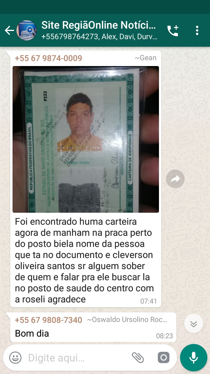 Regiaonline Utilidade Pública: Carteira de Identidade é encontrada nas proximidades do Posto Biela em Glória de Dourados.