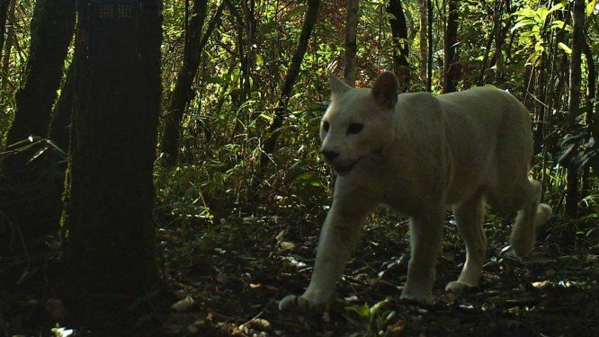 Pela primeira vez no mundo, onça-parda branca rara é vista
