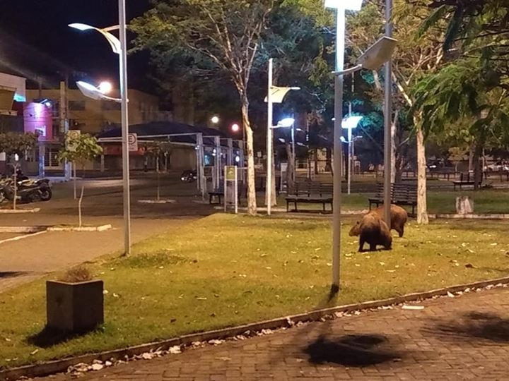 Capivaras passeiam na Praça Ramez Tebet e imagem viraliza em Três Lagoas