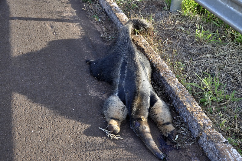 Regiaonline Ameaça de Extinção: Tamanduá Bandeira é encontrado morto próximo ao trevo que dá acesso a Guassulândia.