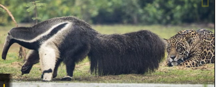 Tamanduá-bandeira encara onça no Pantanal – e nem se abala