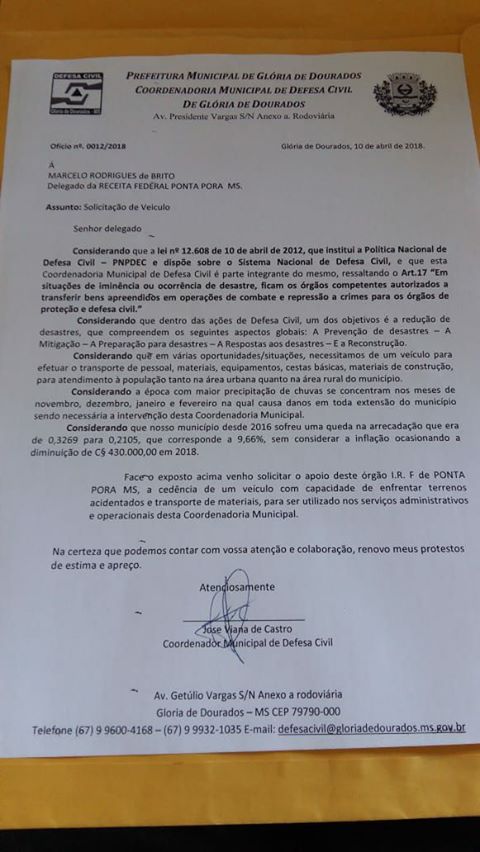 Regiaonline Urgente: Coordenador Municipal da Defesa Civil Solicita Veículo.