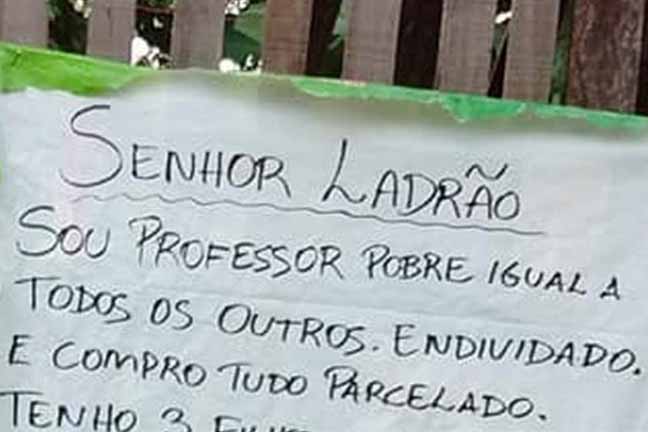 Professor faz apelo a ladrão após ter casa invadida: 'sou pobre igual a todos os outros'