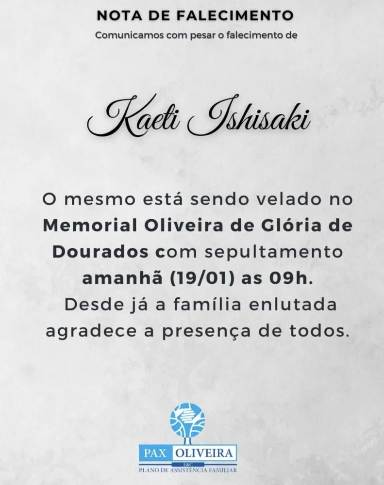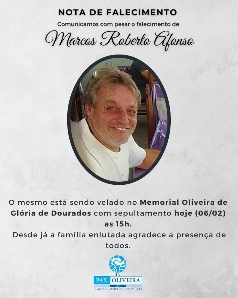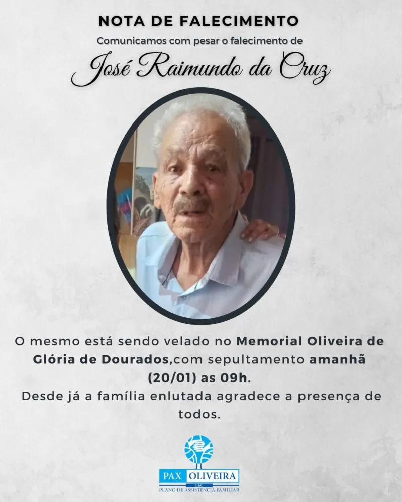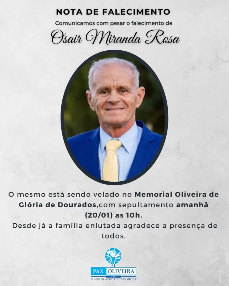 Nota de falecimento em Glória de Dourados