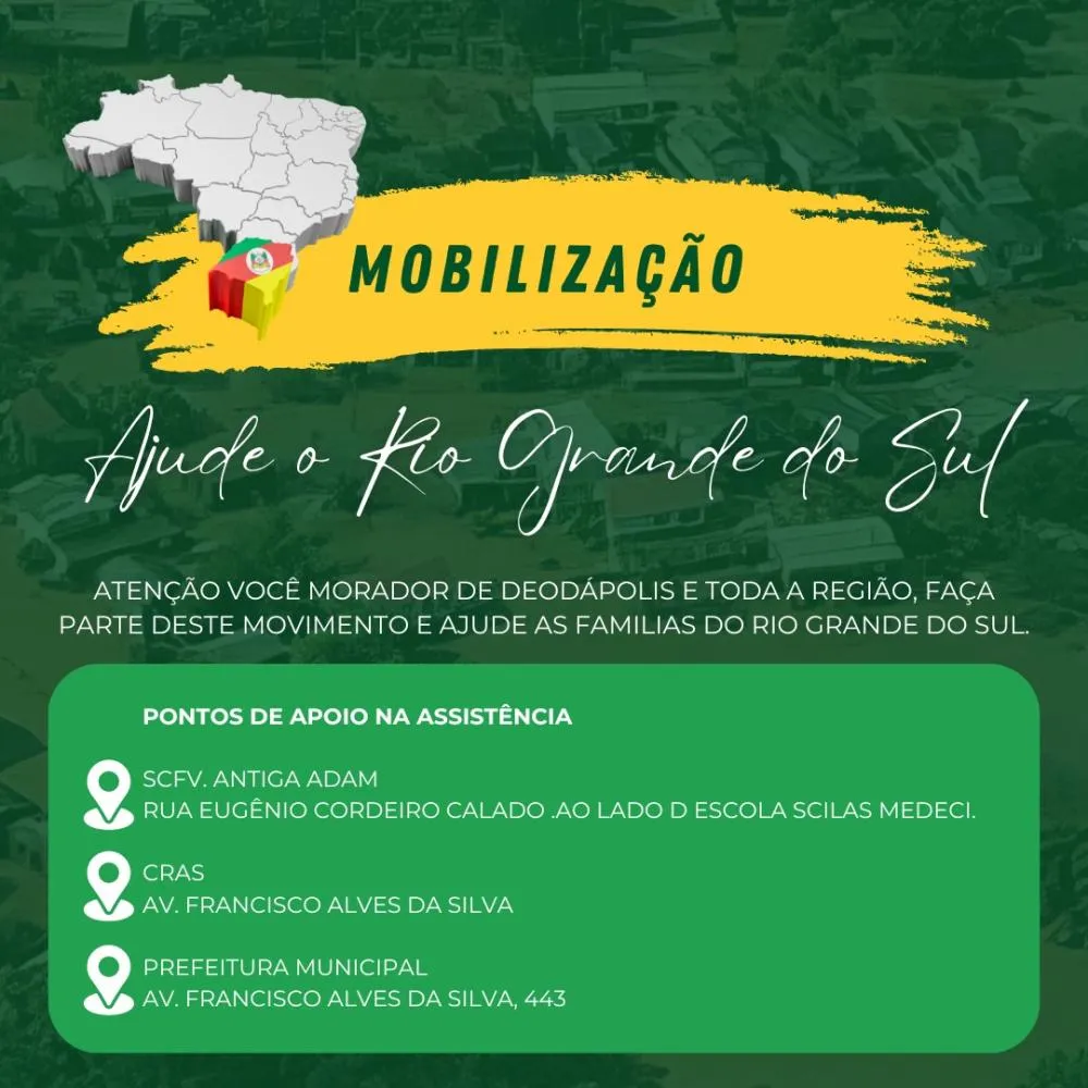 Deodápolis se une em solidariedade: Veja aqui os locais de arrecadação para ajuda humanitária ao Rio Grande do Sul