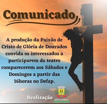 Regiaonline Comunicado: Ensaios da Paixão de Cristo serão realizados Sábados e Domingos no DEFAP.