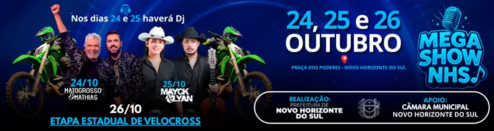 NOVO HORIZONTE DO SUL: Matogrosso & Mathias, Mayck & Lyan e Velocross agitam a cidade neste final de semana