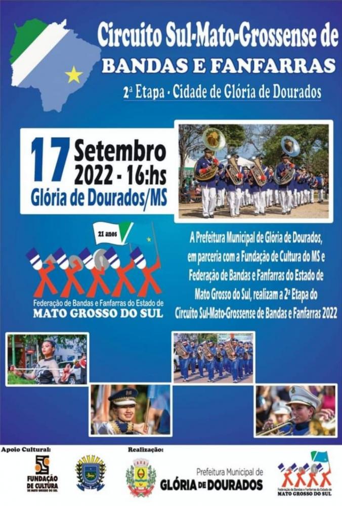 Regiaonline Musical: Glória de Dourados realizará a 2ª Etapa do Circuito Sul-mato-grossense de Bandas e Fanfarras 2022.