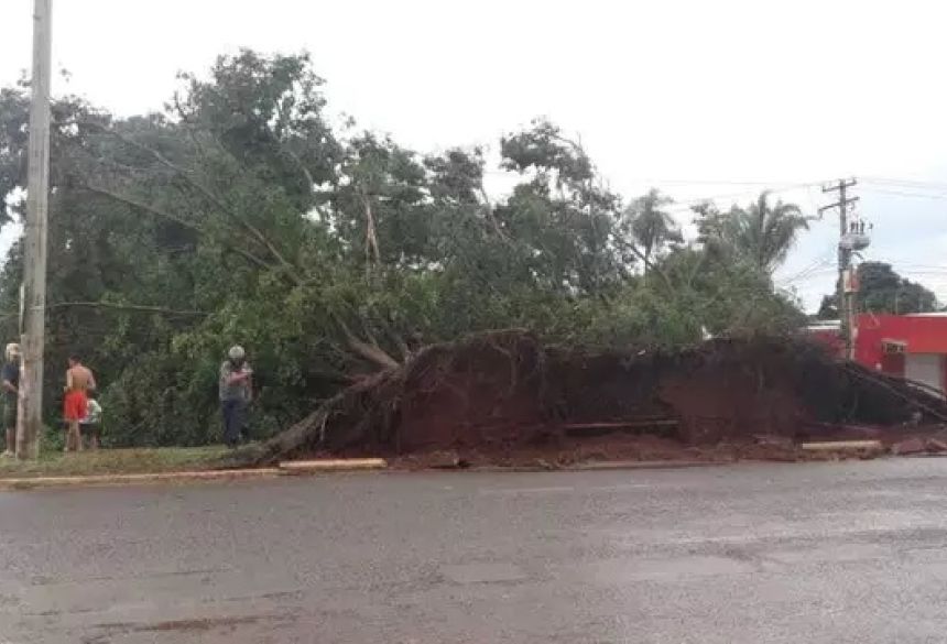 Com ventos de 52 km/h, chuva deixa estrago e derruba árvores em MS