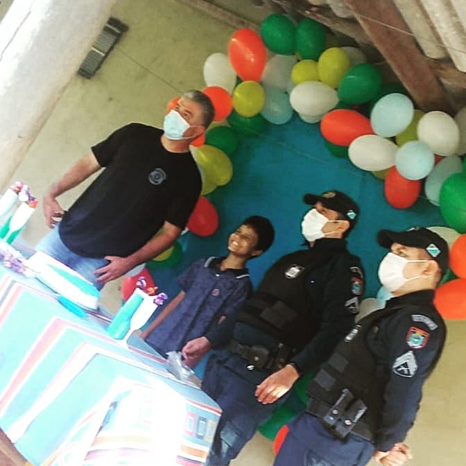 Polícias Militar e Civil fazem surpresa em aniversário de garoto que sonha ser policial